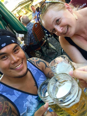 We spent the late afternoon wandering in the direction of the Chinese Tower in the English garden. We poked our heads into the hofbrauhaus along the way but didn’t stay.