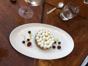 Dessert: Lemon Tart with Lavender Whipped Cream.