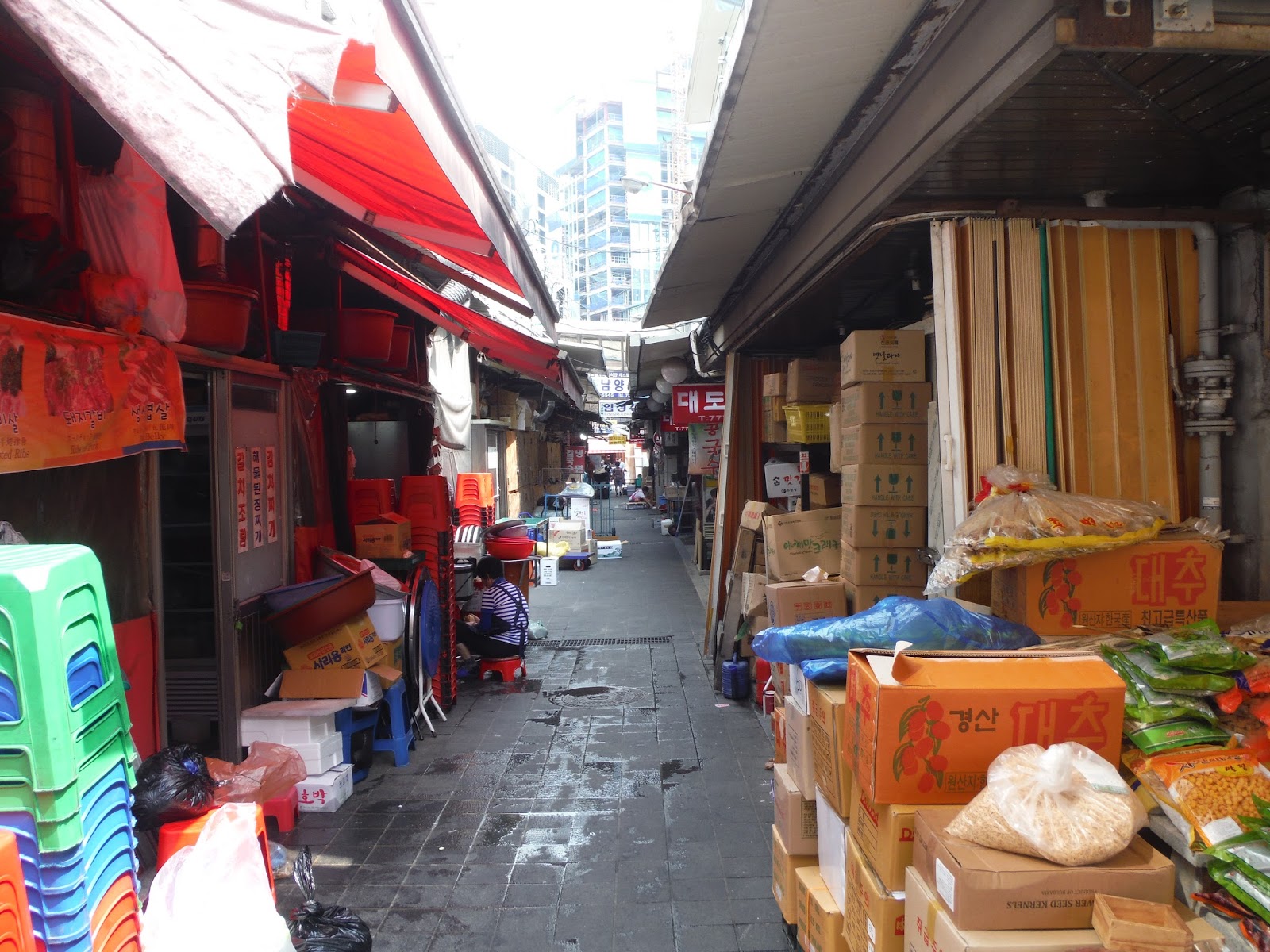 Shopping in Seoul seems to be the main occupation of most of the residents. I spent today wandering through three very distinct shopping scenes. I started the morning at Namdaemun Market – the oldest and largest market in Seoul. It was another area packed with thousands of shops and street stalls. This one was a little bit easier to navigate as the streets were wider and the various entrances were well marked. When I got to the end of a street I could easily figure out which way to go next. I only got lost once when I went into an actual multi-floor shop and came out a different door than I went in – but I figured it out.