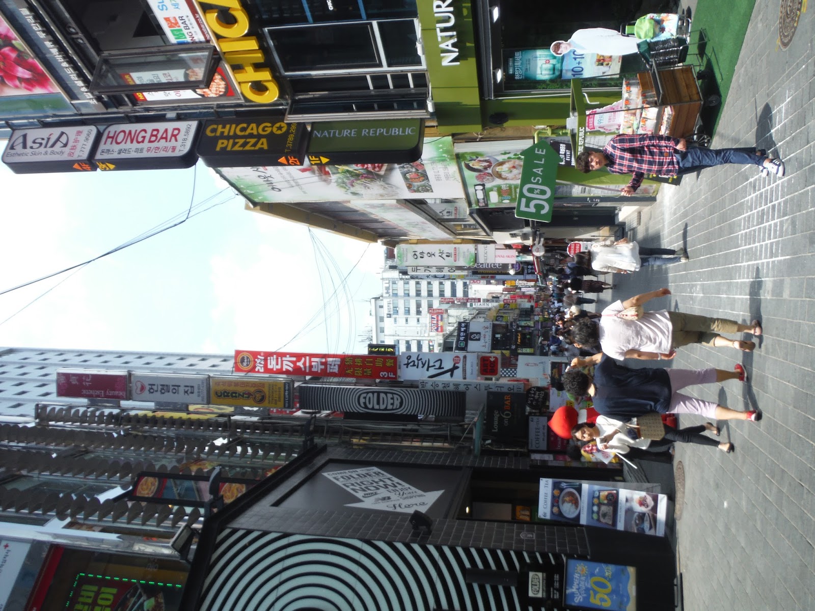 Then I headed to the Myeongdong area of Seoul. This area is the center of all things shopping in Seoul. There were thousands of shops on small streets laid out in a rough grid pattern. All the big brands were there as well as tons of restaurants and coffee shops. It was fun to wander – especially when I finally found tourist information and got a map of the area. I was kind of going in circles before that – many of the Korean brand stores had multiple locations so it was confusing. I didn’t really find anything to buy – things are really expensive here, and it was mostly high end cosmetics and clothing.