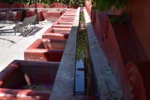 The plaza was outside a small chapel and is known for its outdoor public laundry basins. There we learned about the history of water in San Miguel and found out people still come here to do their laundry, and bathe their kids, in the basins. There is a tap in the wall that anyone can turn on and it fills the long trough. The women use buckets to fill the basins from the trough and add their soap. Above the plaza were huge trees filled with egret nests and we saw several flying nearby land in the trees.