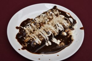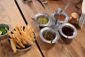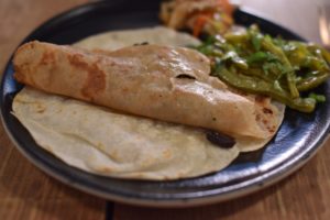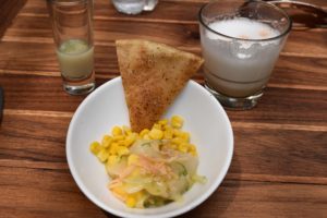 Feeling pretty full at this point we were surprised when we walked about five minutes and were already sitting down for another dish. This stop was at “Don Taco Tequila” which though quite popular serving traditional tacos, became a vegan restaurant a year ago. They have gained in popularity and there we sampled flour tortilla tacos with fried cashew gratin (the thing that looks like a darker second tortilla), roasted mushrooms, and nopal (cactus) salad. They also had several delicious salsas served with fresh chips. It was easy to see why they are so popular. I didn’t know vegan food could taste this good!