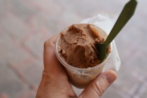 Our mouths were burning from the spicy salsas so our next stop was an ice cream vendor on the street corner. We had seen several of these vendors the last two evenings but weren’t sure how to order. We each got two flavors served in a small cup. Mom and I shared one as we were both so full and didn’t want to waste. We tried coffee and chocolate but heard rave reviews from our group about other more local flavors. I guess we will just have to go back and try them all. The craziest part about the ice cream was that it was simply sitting in metal canisters in giant tubs of ice. They just add ice all day and continue to mix the ice cream so it stays a constant temperature.
